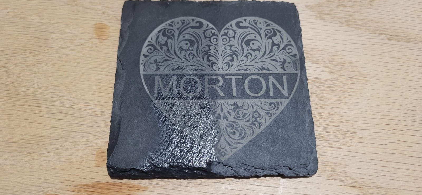For the best results, engrave directly onto the slate without adding any oils or other contrast enhancers. This will preserve the coaster’s natural look and functionality.