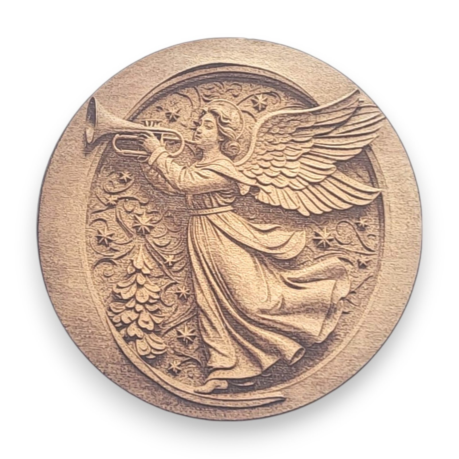 - Angel with Trumpet Design: The intricately engraved angel, with flowing wings and a trumpet, brings a sense of heavenly joy and celebration to your holiday decor.