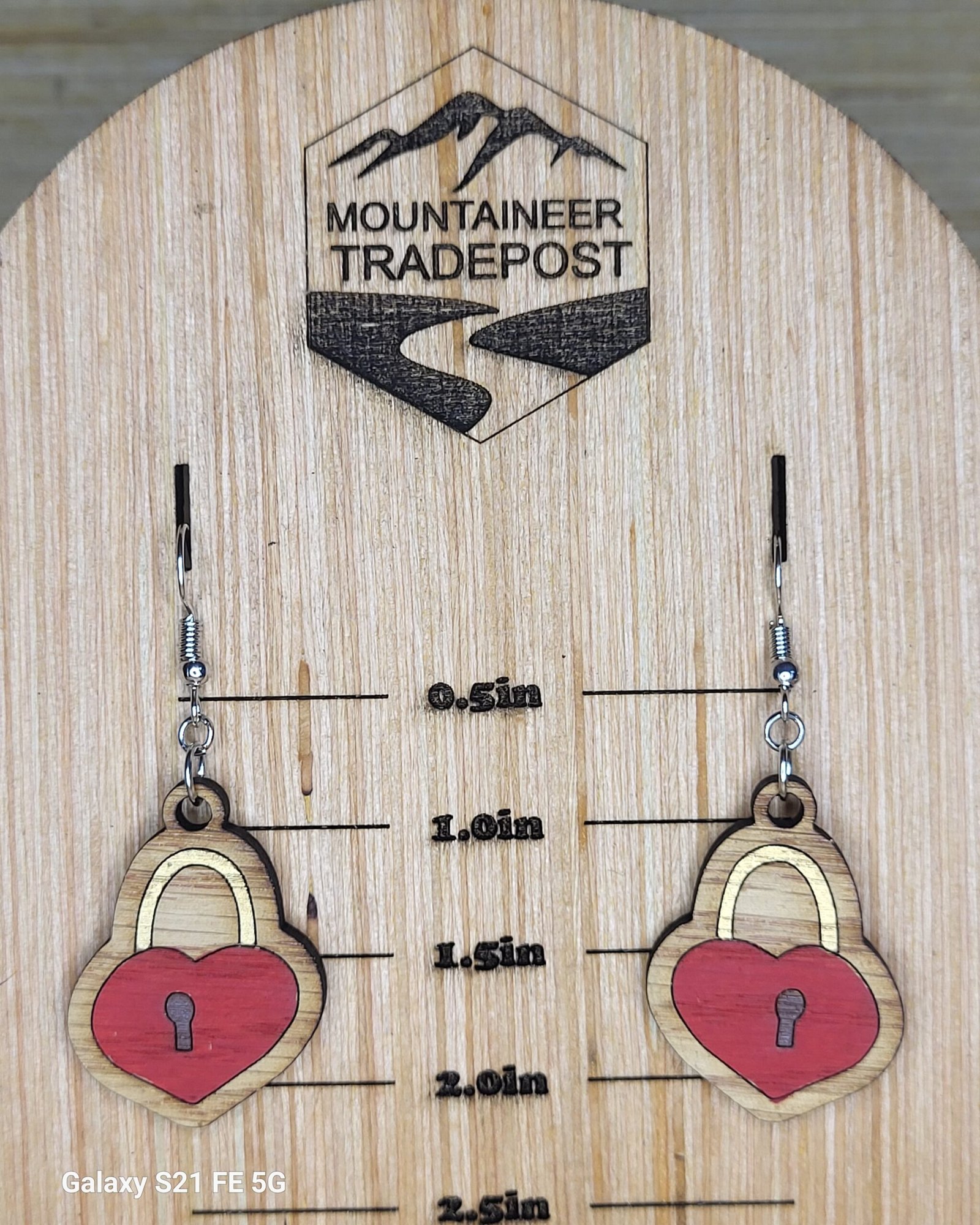 Heart-Shaped Red Padlock Dangle Earrings with Gold Trim – Hand-Painted Jewelry