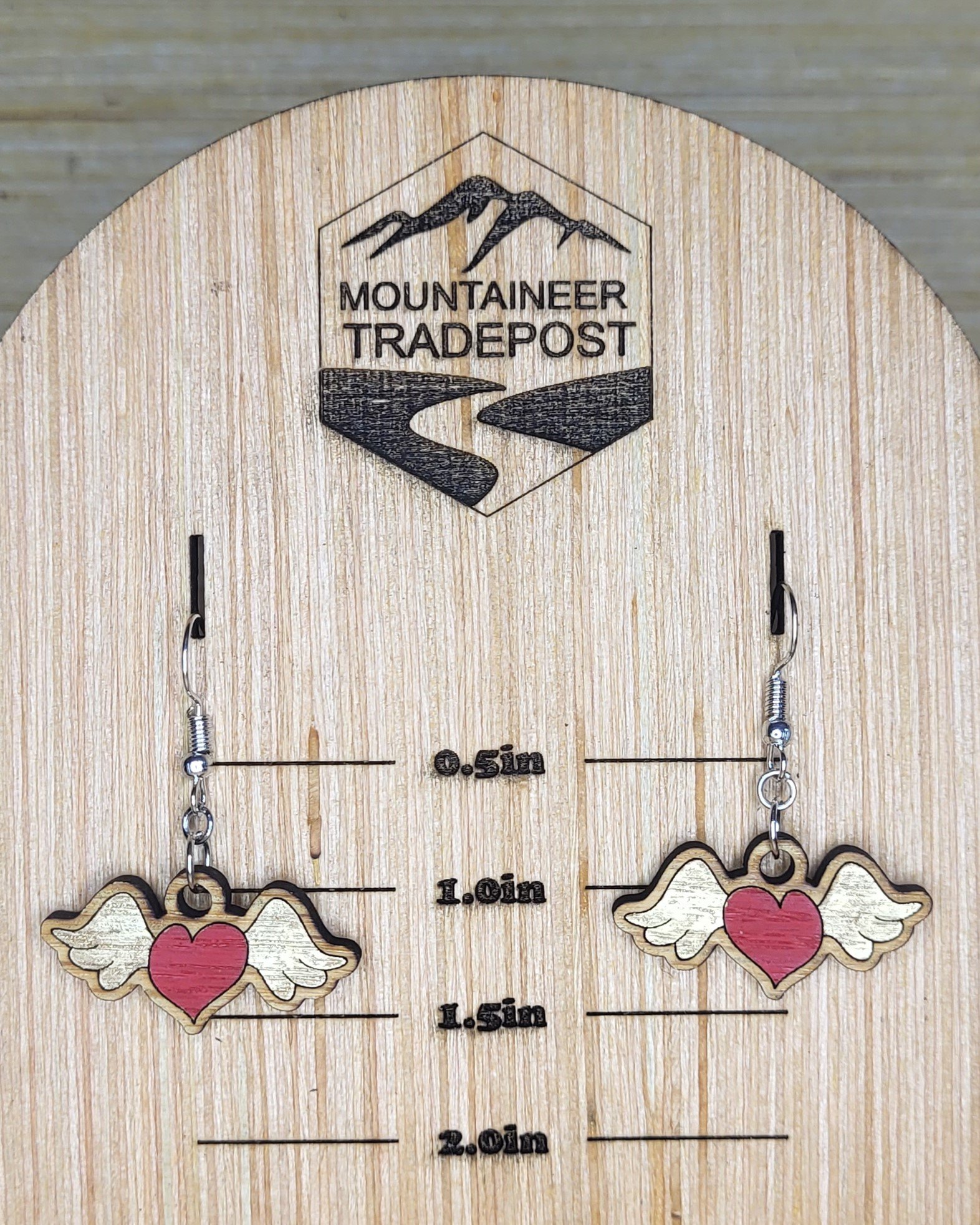 Heart with Pointed Wings Dangle Earrings – Hand-Painted Wooden Jewelry