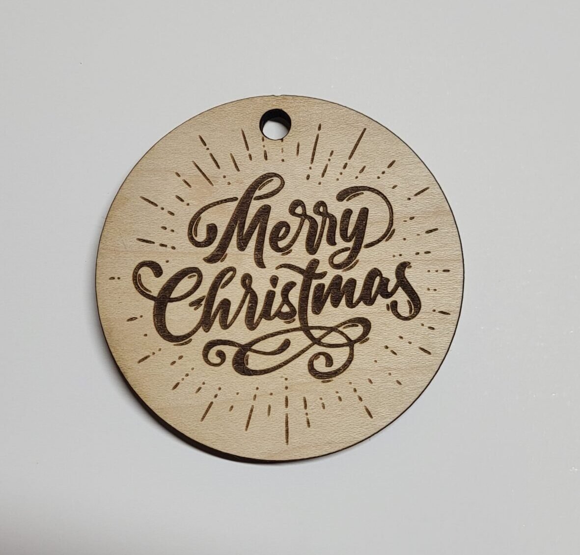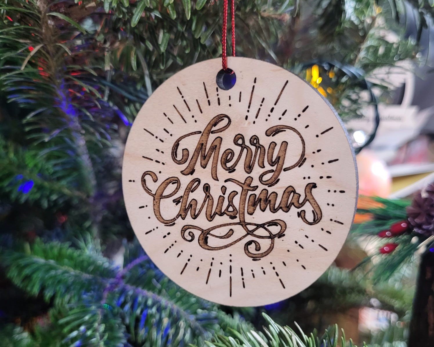 Merry Christmas Intricate Engraved Wooden Christmas Ornament
