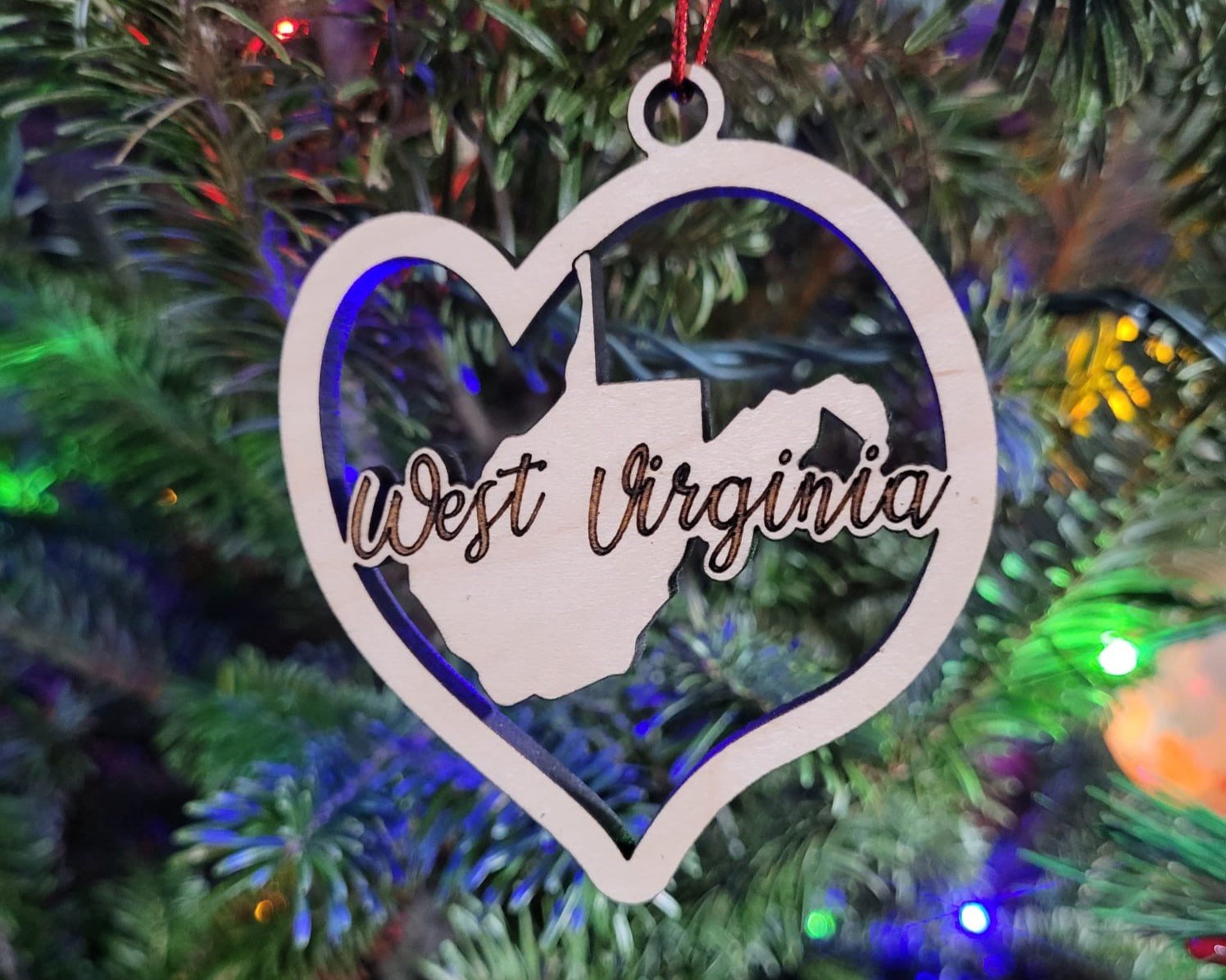Add a touch of wild and wonderful wilderness to your holiday décor with this unique, West Virginia State wrapped in a heart ornament. Measuring 3.5 inches tall, this ornament features the lovely outline of West Virginia with the words “West Virginia” in a scrolled font across the front. Perfect for wildlife enthusiasts, West Virginians, those with a wild and wonderful soul , or those who appreciate rustic charm. This ornament is sure to stand out on your Christmas tree or as a thoughtful gift for outdoor lovers.